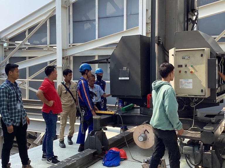 Tim kami terdiri dari personel teknis yang memiliki pengalaman kerja lapangan di sistem gondola gedung bertingkat. Setiap anggota tim memahami risiko kerja di ketinggian serta pentingnya kepatuhan terhadap prosedur keselamatan.